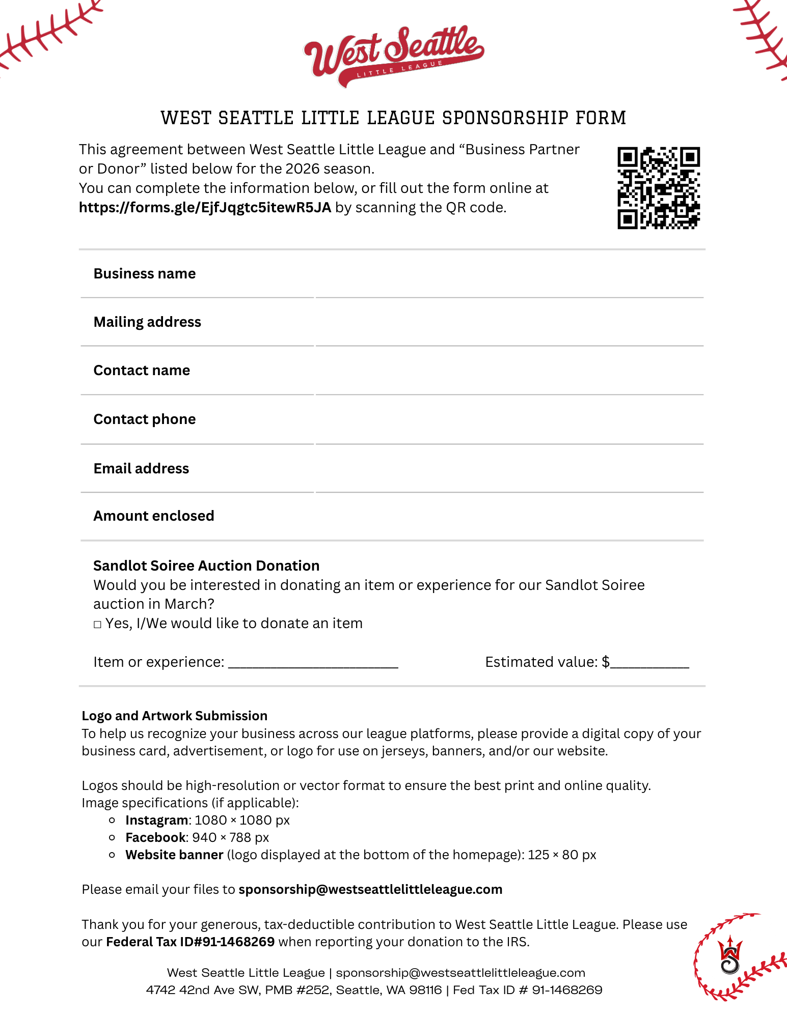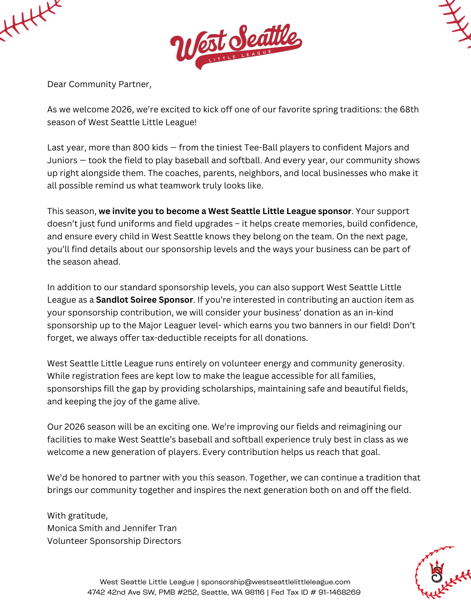West Seattle Little League 4742 42nd Ave SW, PMB 252Seattle, Washington 98116